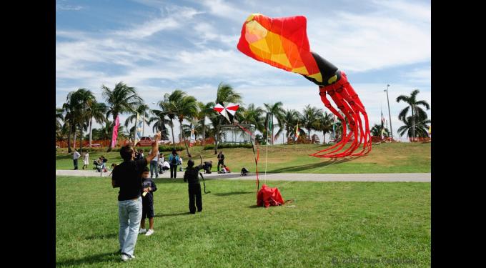 Come out and enjoy the spectacular Florida sunshine and fly a kite that YOU made while enjoying live music and yummy foods at Haulover Park in Miami. The Skyward Kites company and Miami-Dade Parks Department have hosted this annual Kite Festival for over 20 years. Marvel at the HUGE 100 foot flying squid, 30 foot scuba diver or the 150 foot rainbow kite. There will be 100s of kites soaring above in a vibrant dance. Visitors can craft a free kite, bring their own, or rent one from Skyward.